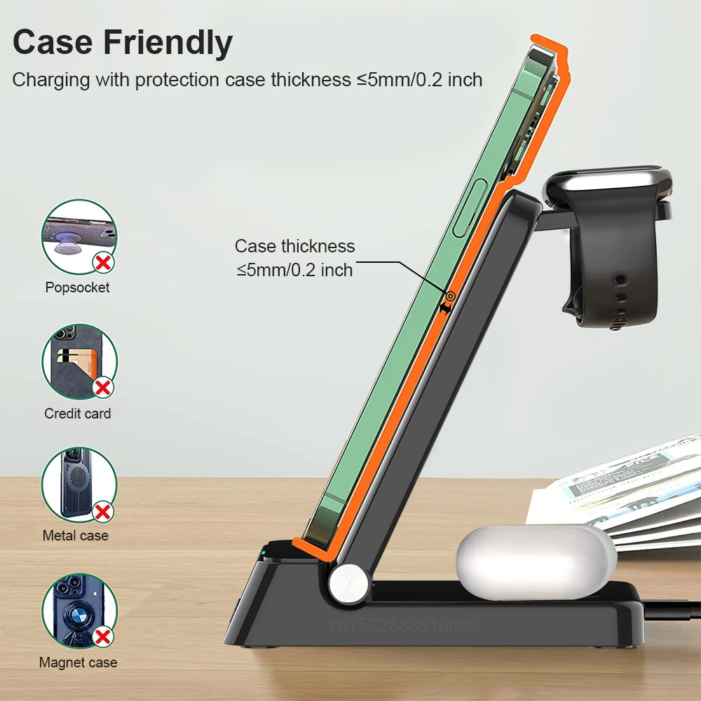 (SG) ALON 4 in 1 Wireless Charger for iPhone 14/13/12/11, Apple Watch 8/SE/7/6/5/4/3, AirPods Pro 2/Pro/AirPods 3/2