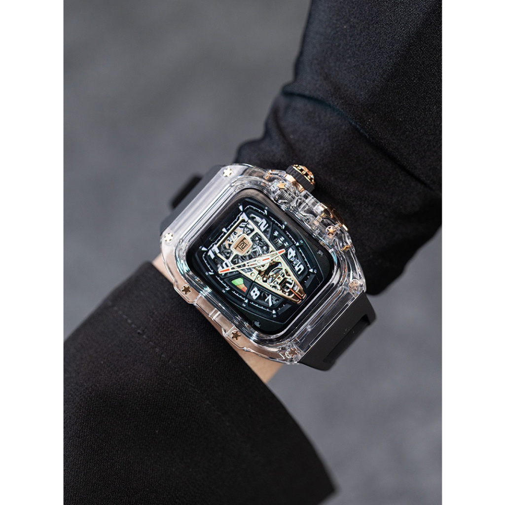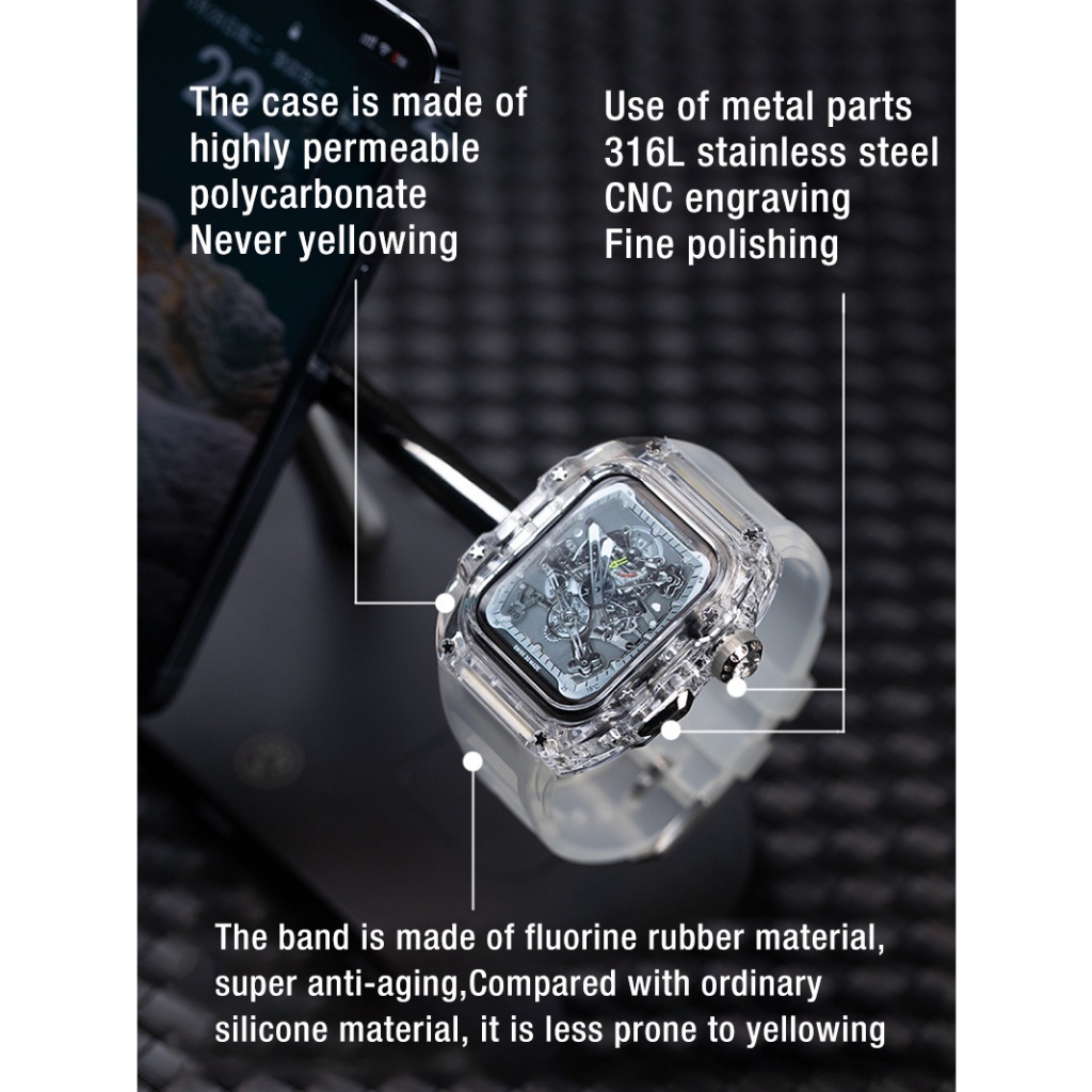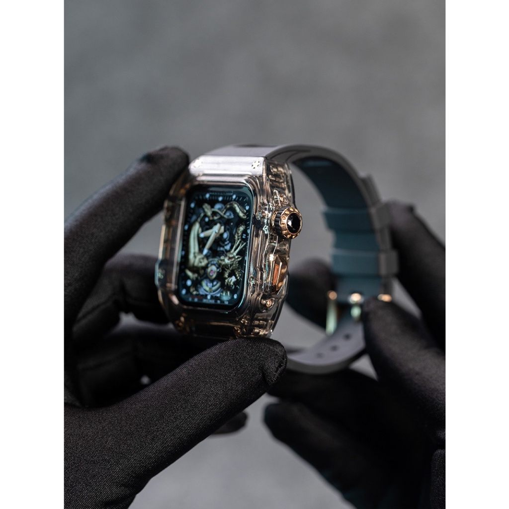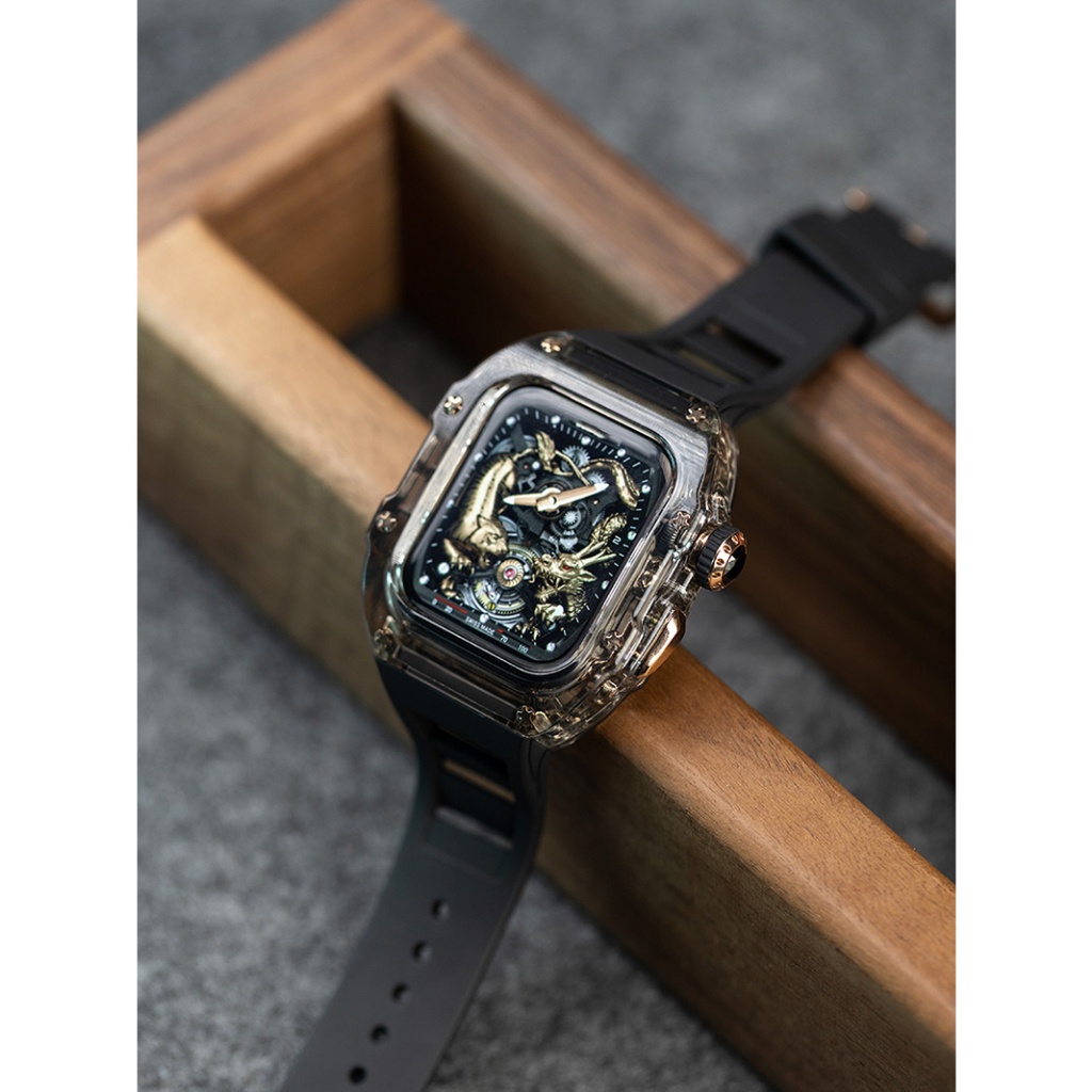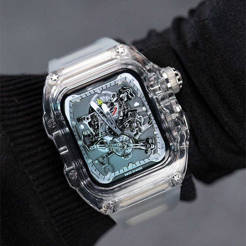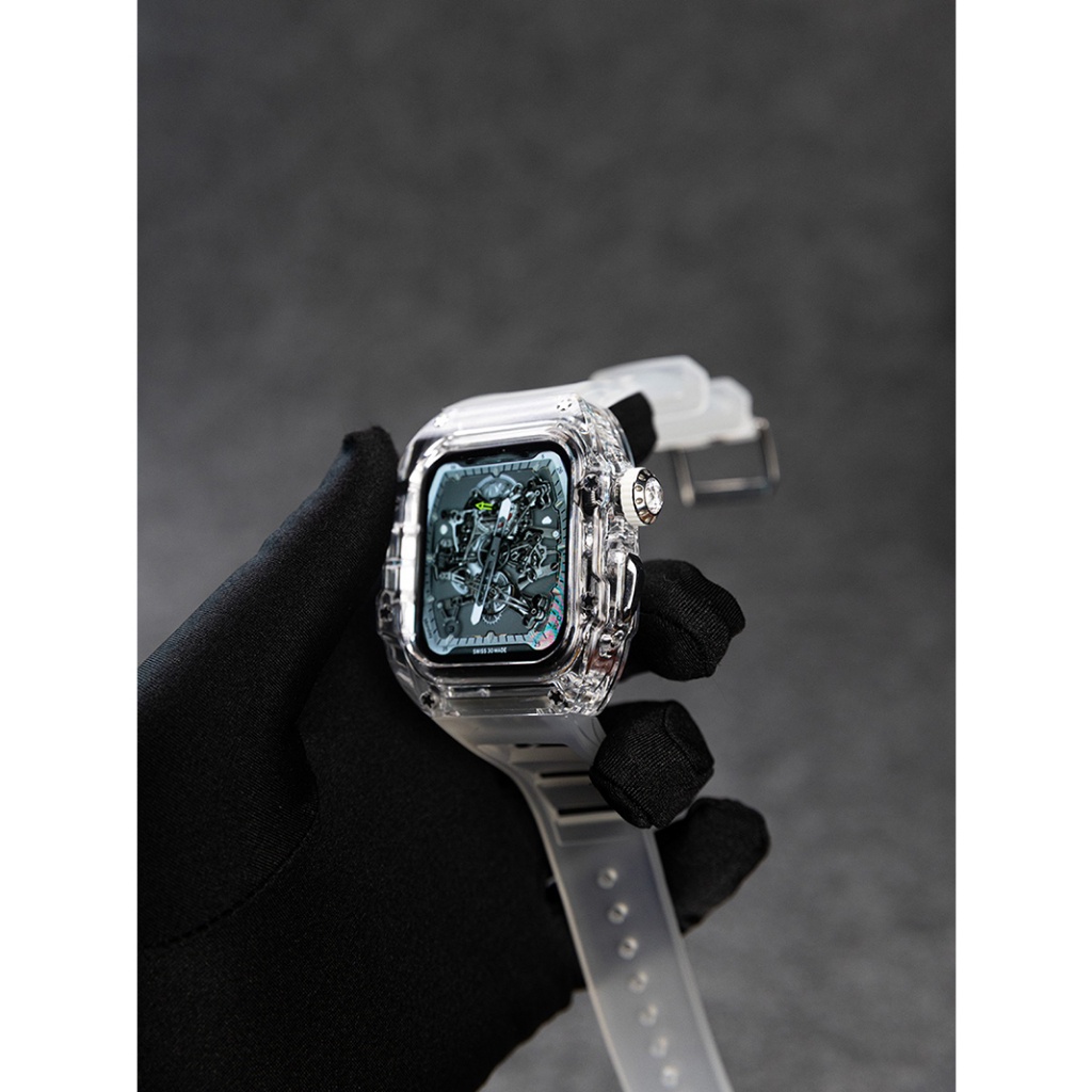 [Upgraded Version] Transparent Modified Strap Transparent Case Suitable for IWatch Full Range 44mm 45mm 49mm Rubber Strap Men's Strap