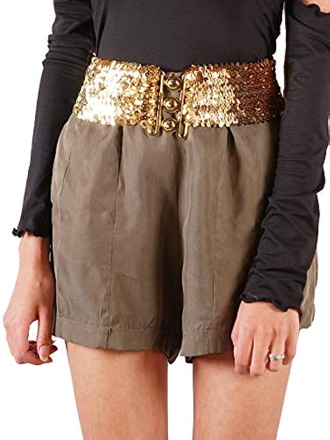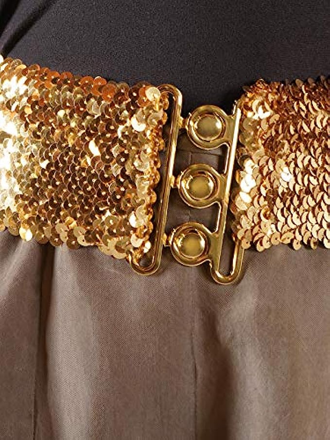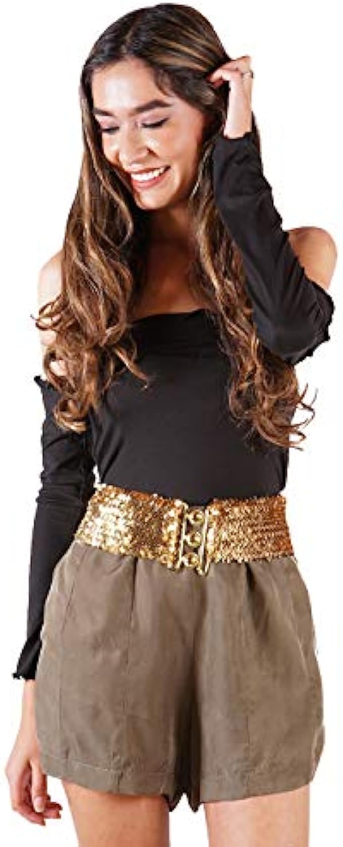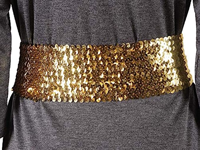 • GLAMOROUS FASHION ACCESSORY Add an extra layer of sparkle to your our outfit with this wide decorative sequin belt! Use the comfortable elastic band to cinch your dresses, skirts and tops creating the finishing touch your whole look.