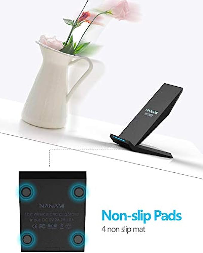 Fast Wireless Charger,NANAMI Qi Certified Wireless Charging Stand Compatible iPhone 13/12/SE 2020/11/XS Max/XR/X/8 Plus,Samsung Galaxy S22 S21 S20 S10 S9 S8 Note 20 Ultra/10/9/8 and Qi-Enabled Phone