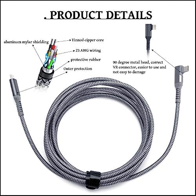 90 Degree angle USB metal head: The 90 degree USB head design makes the link cable connect the VR headset more closely, so it will not fall easily