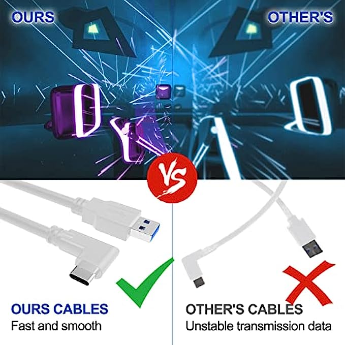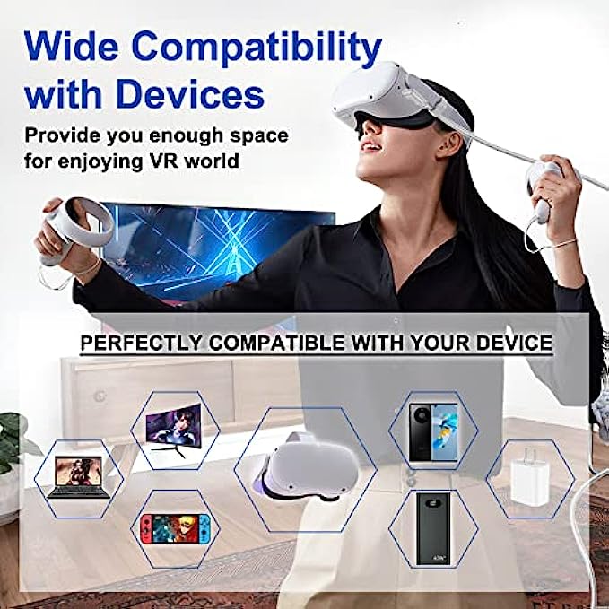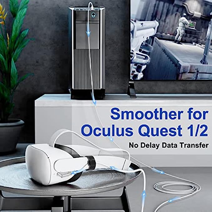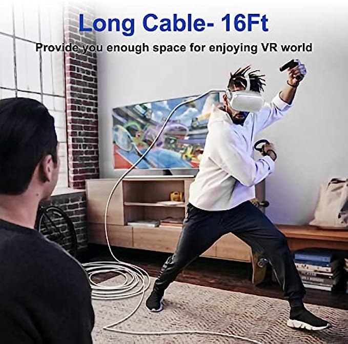 【Cord for PC to Connect Meta/Oculus Quest 】BSTKEECL high quality long VR cables design length up to 16FT(5m),which making you connect the headset and play computer games easily ,and having an immersive gaming experience .Thus you must not be worry about the dragging the limited cable.