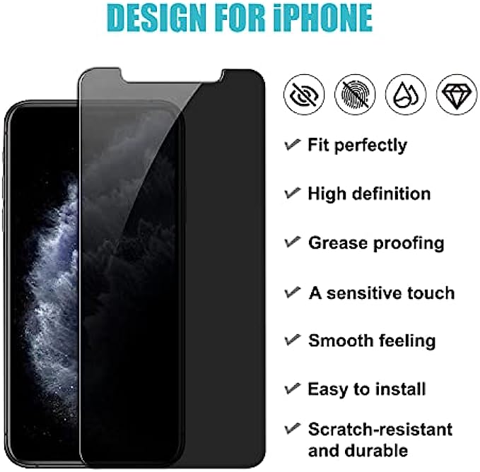 Pehael [2 Pack] Privacy Screen Protector for iPhone 11 Pro Max/iPhone Xs Max Anti-Spy Tempered Glass Film Upgrade 9H Hardness Case Friendly Easy Installation Bubble Free 3D Touch Support [6.5 inch]