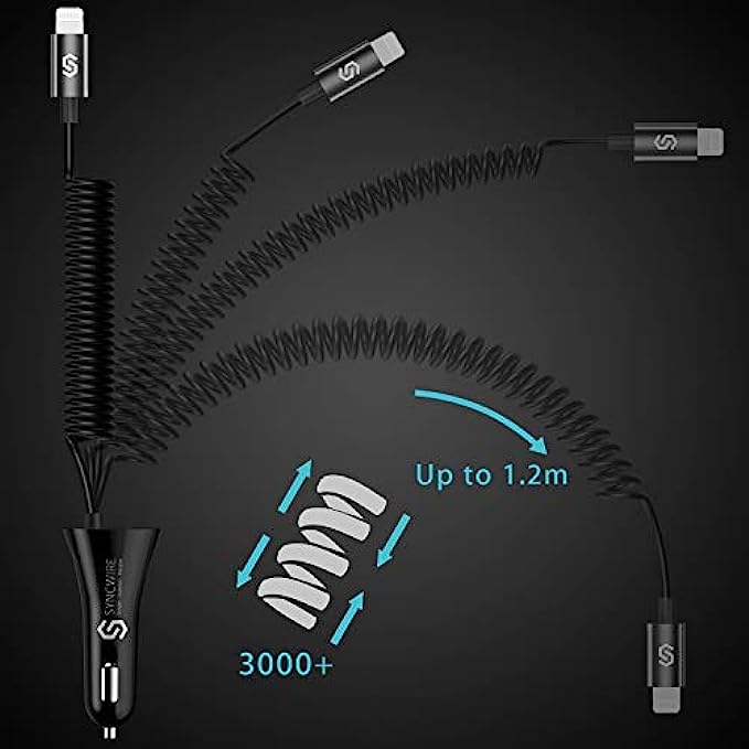 Syncwire iPhone Car Charger - Upgrade [Apple MFI Certified] 4.8A/24W Car Charging Adapter with Built-in Coiled Lightning Cable for Apple iPhone 13/12/11/Xs/XS Max/XR/X/8/7/6s/6 Plus, iPad & More