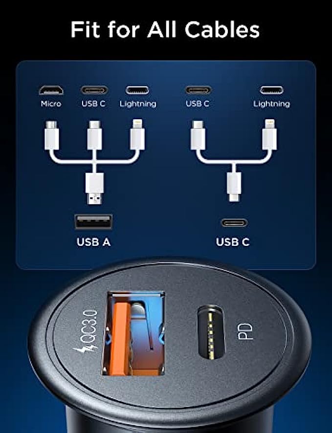 ⚡CHARGER TWO DEVICES SIMULTANEOUSLY: Equipped with USB A(QC3.0) port and USB C(PD3.0) port, AINOPE cigarette lighter usb charger can charge two devices simultaneously.
